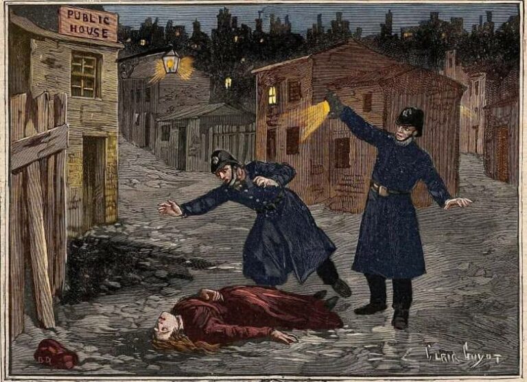 Une nuit glaciale et oppressante enserre les ruelles de Whitechapel. Chaque pas rĂ©sonne sur les pavĂ©s humides, amplifiĂ© par le silence lourd qui enveloppe le quartier. Les ombres spectrales des bâtiments dĂ©labrĂ©s s’étirent sous la lumière vacillante des lampes Ă gaz. Feulements d’une bande de chats. Claquement d’une porte. Dans l’air saturĂ© d’odeurs de fumĂ©e, … Lire la suite de VAGUE D’AGRESSIONS ATROCES Ă€ WHITECHAPEL 📆 3 avril 1888