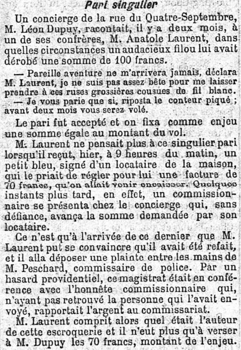 Articles extraits de Le Petit journal du 13 octobre 1900